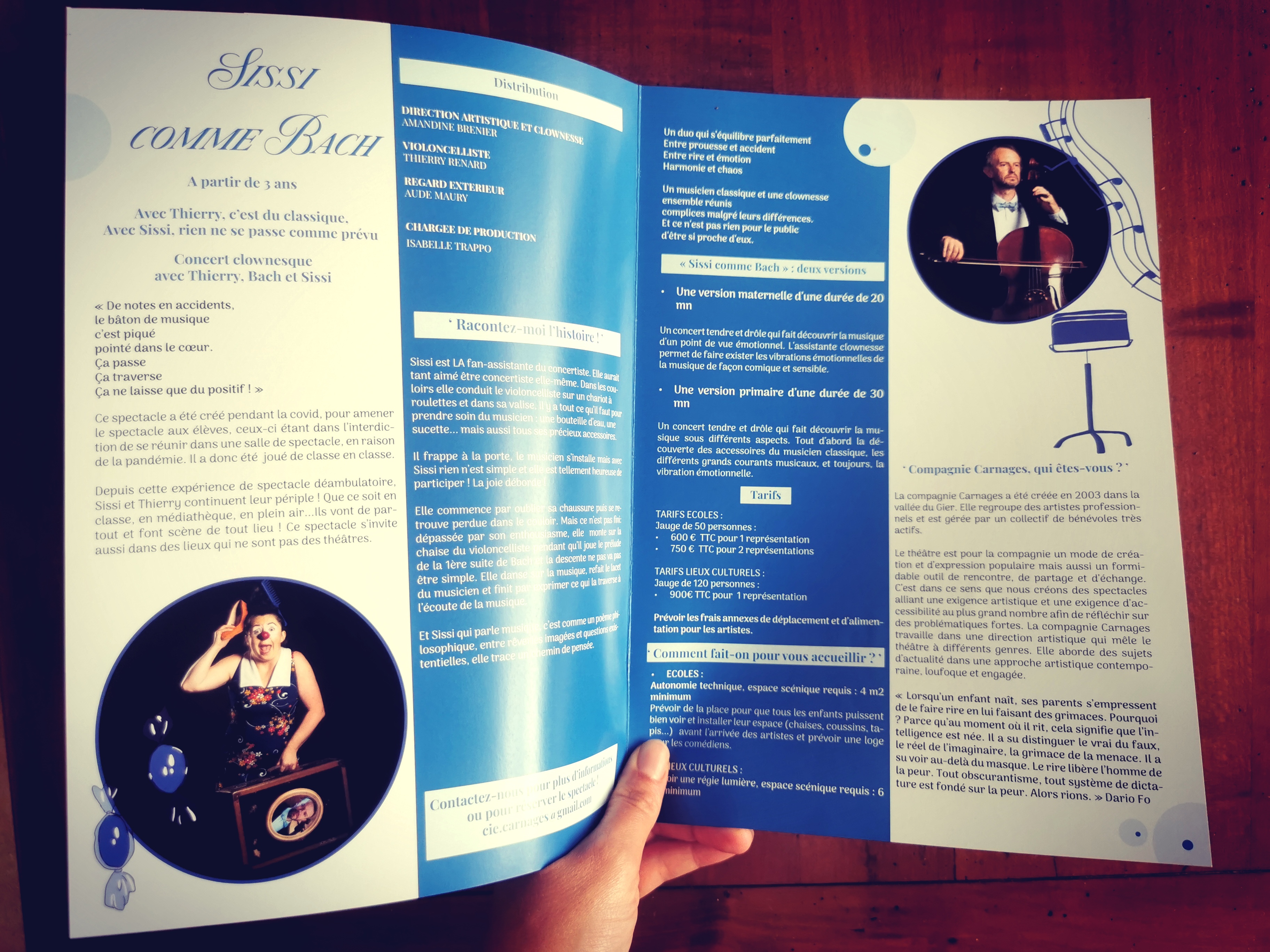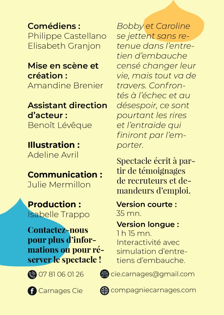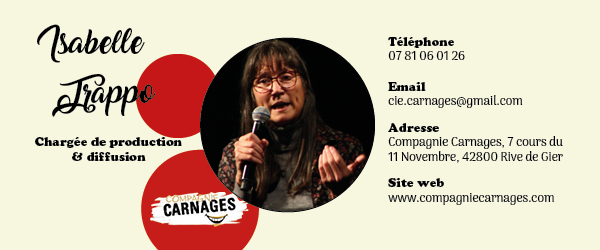 La compagnie de théâtre « Carnages » même les arts du clown, du théâtre, du masque et de la poésie. Elle défend particulièrement le clown comme un personnage capable de provoquer des réflexions profondes. Le rire est tout puissant, il ouvre, relâche et permet d’accueillir de nouvelles pensées, de nouvelles émotions qu’on ne pouvait soupçonner.