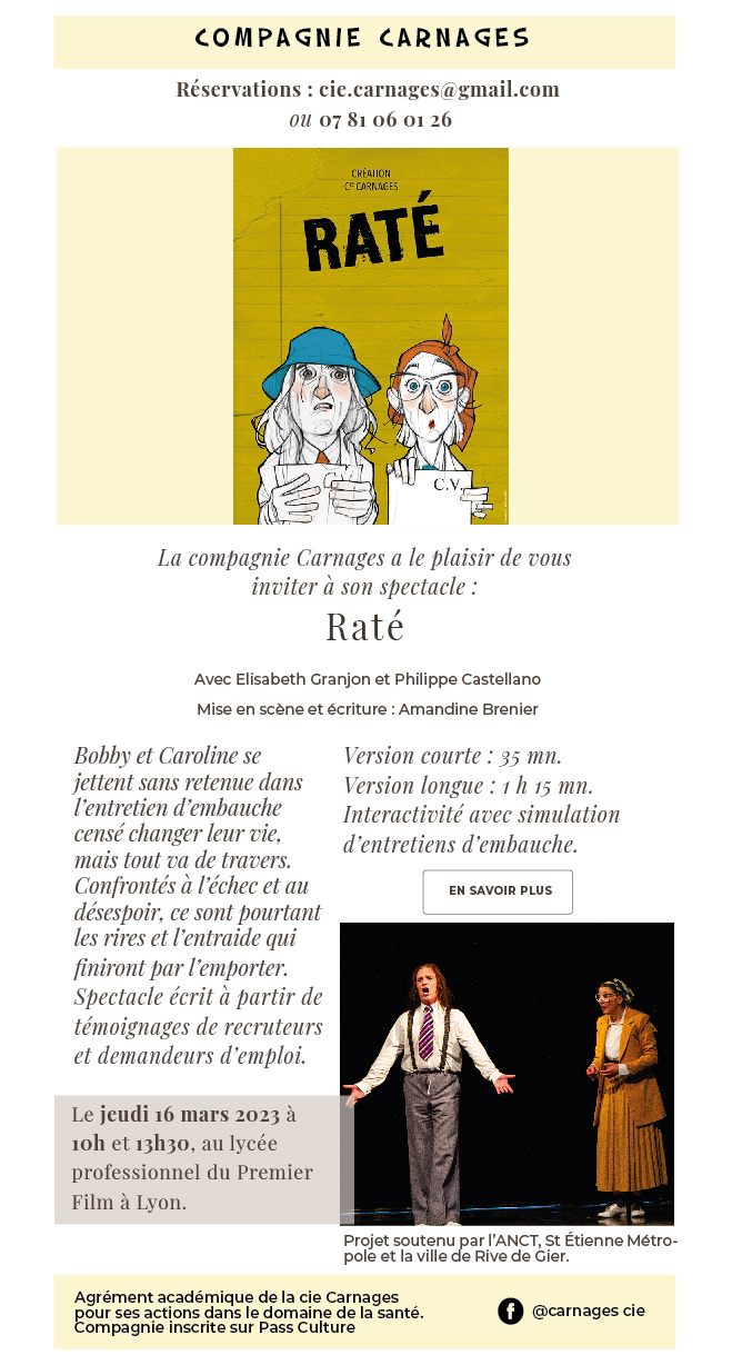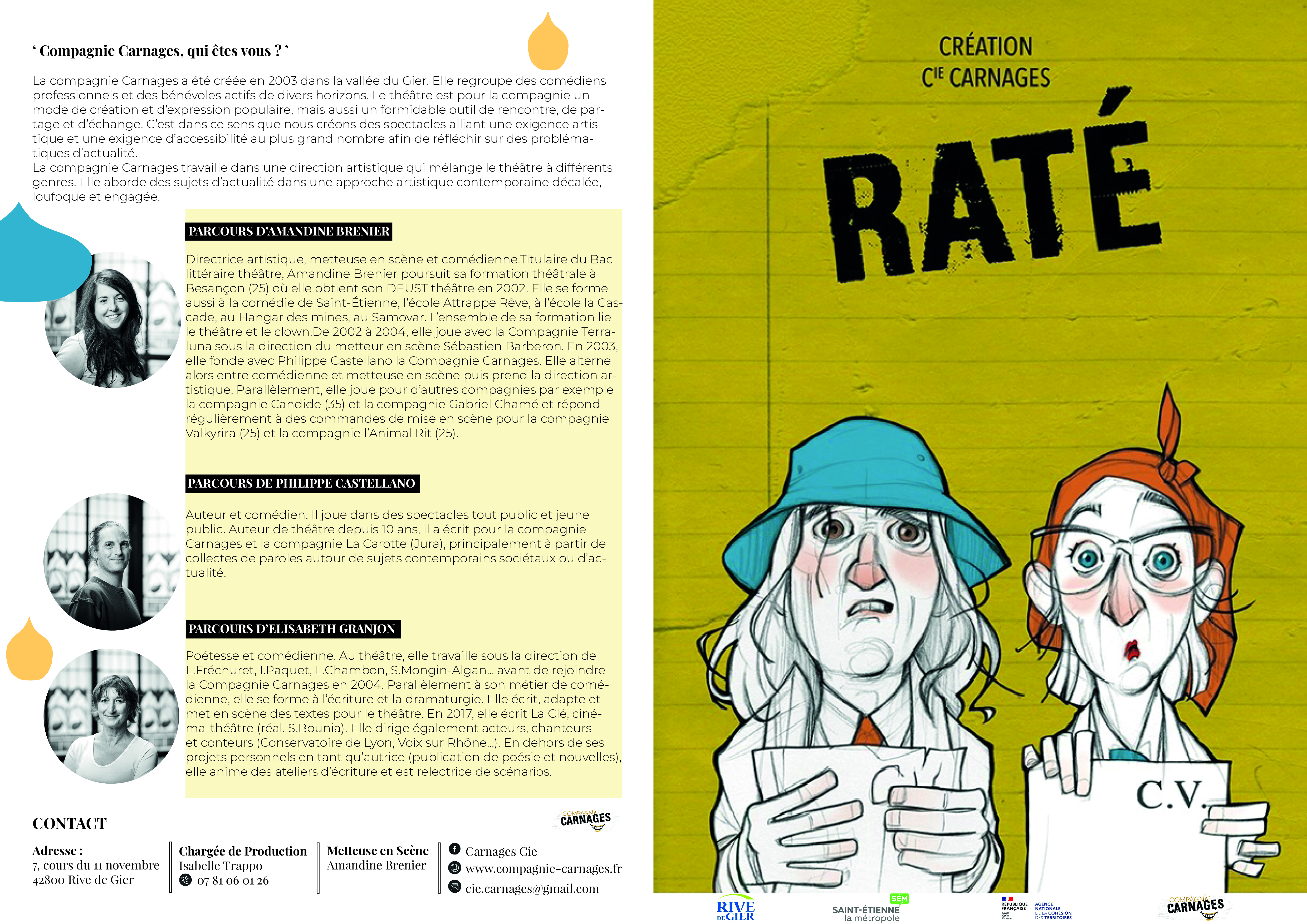 Communication visuelle pour le spectacle « Raté » de la compagnie de théâtre militant Carnages