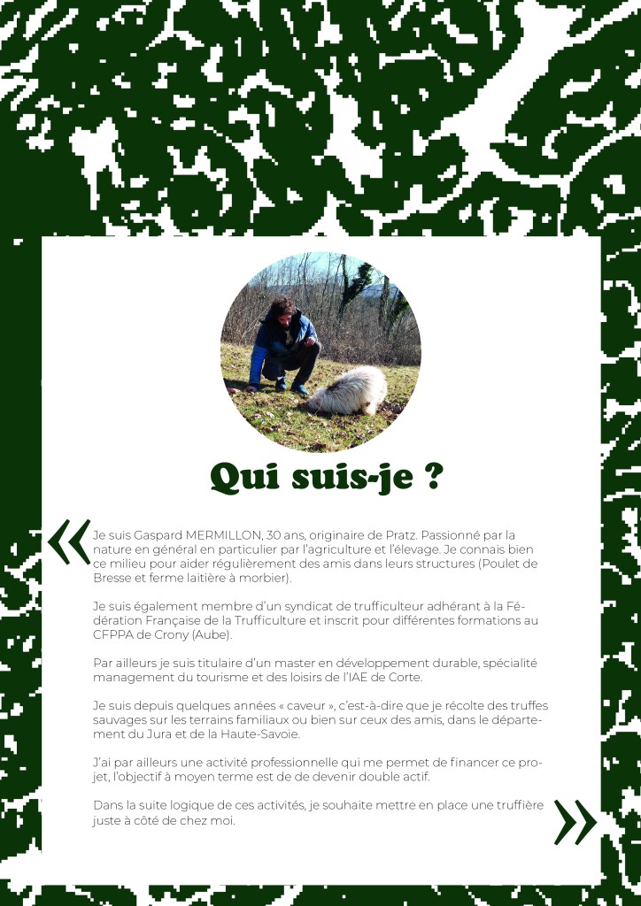 Je suis très heureuse de travailler pour « La truffière de Gaspard », un beau projet d’agriculture biologique dans le Jura.