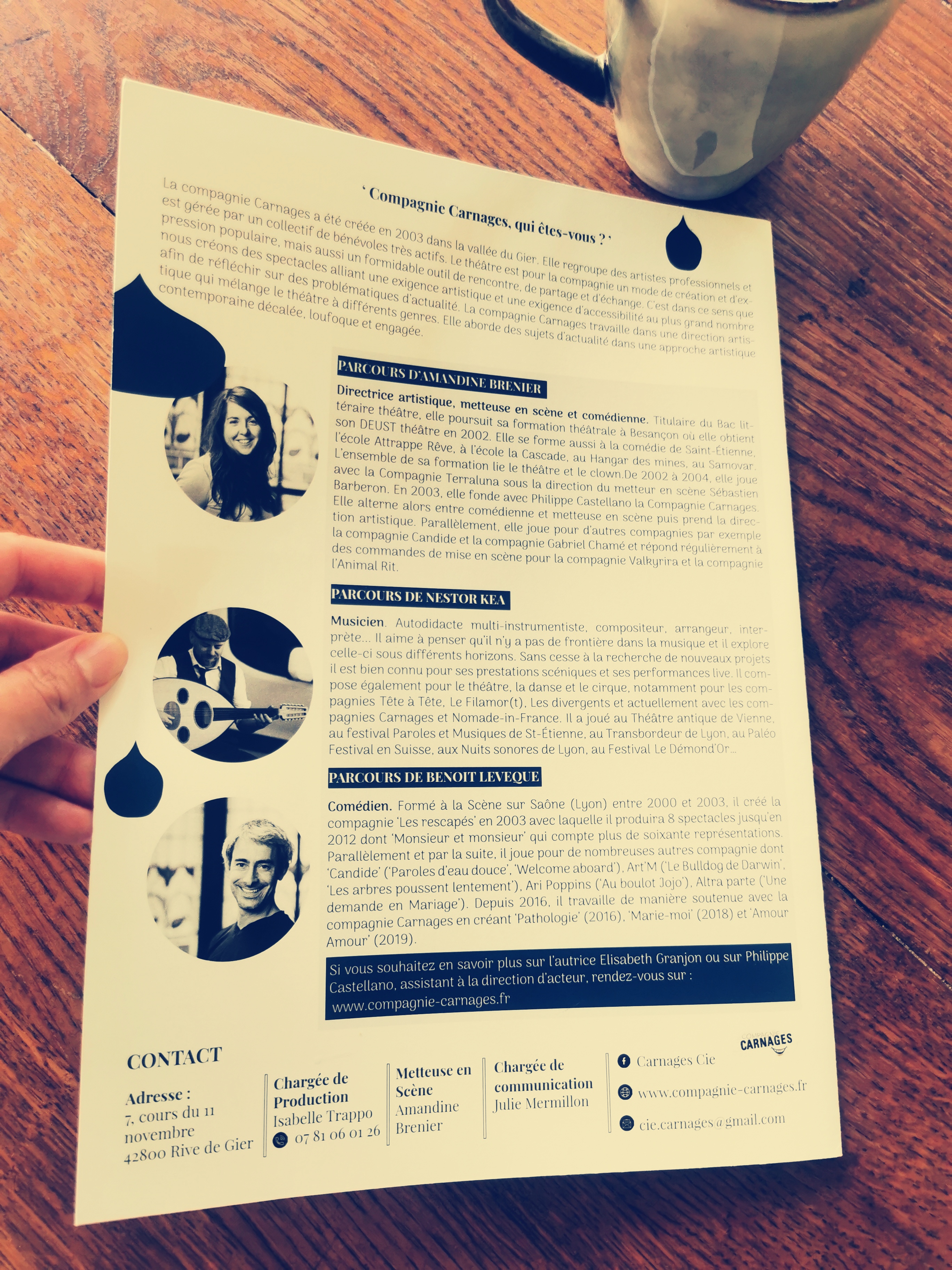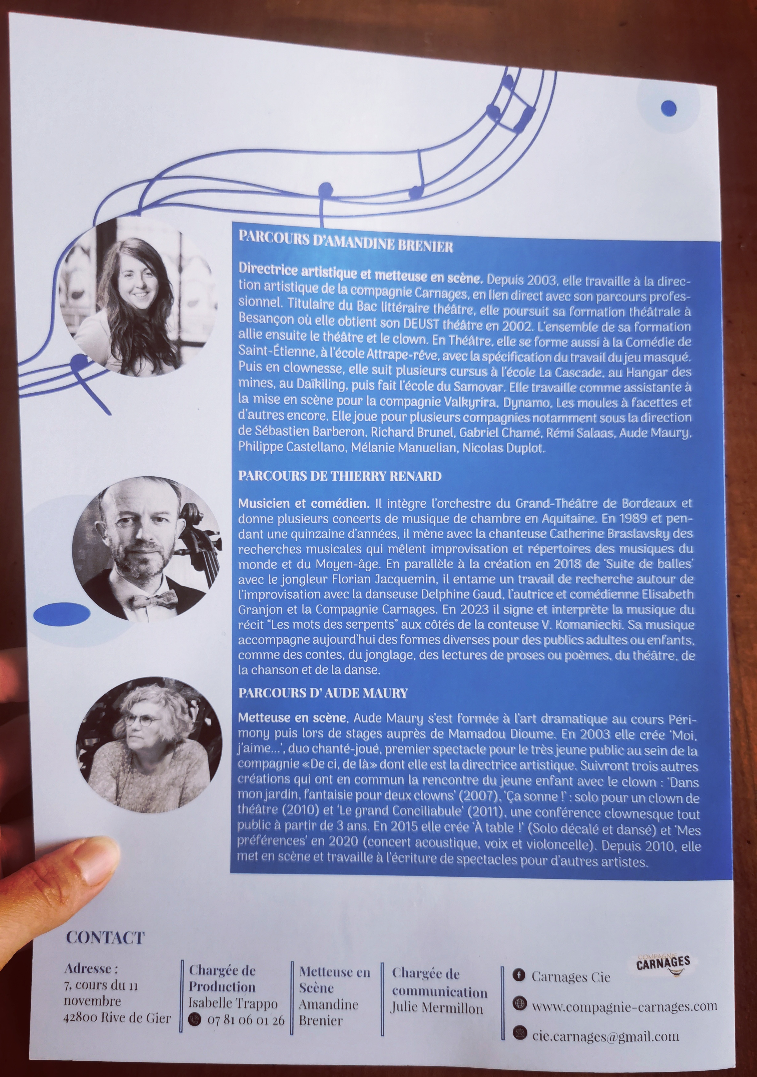 Nouvelles signatures Gmail pour la compagnie de théâtre ‘Carnages », pour la metteuse en scène, la chargée de production & diffusion et la chargée de communication de la compagnie.