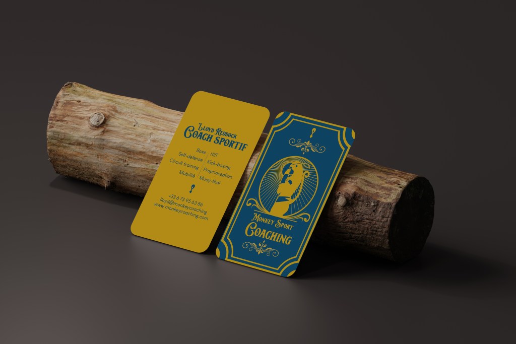 Création d’un logo et d’une carte de visite pour Monkey Coaching, coach sportif en arts martiaux.